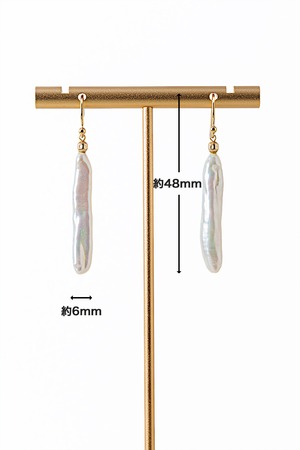 スティック型淡水パール イヤリング
