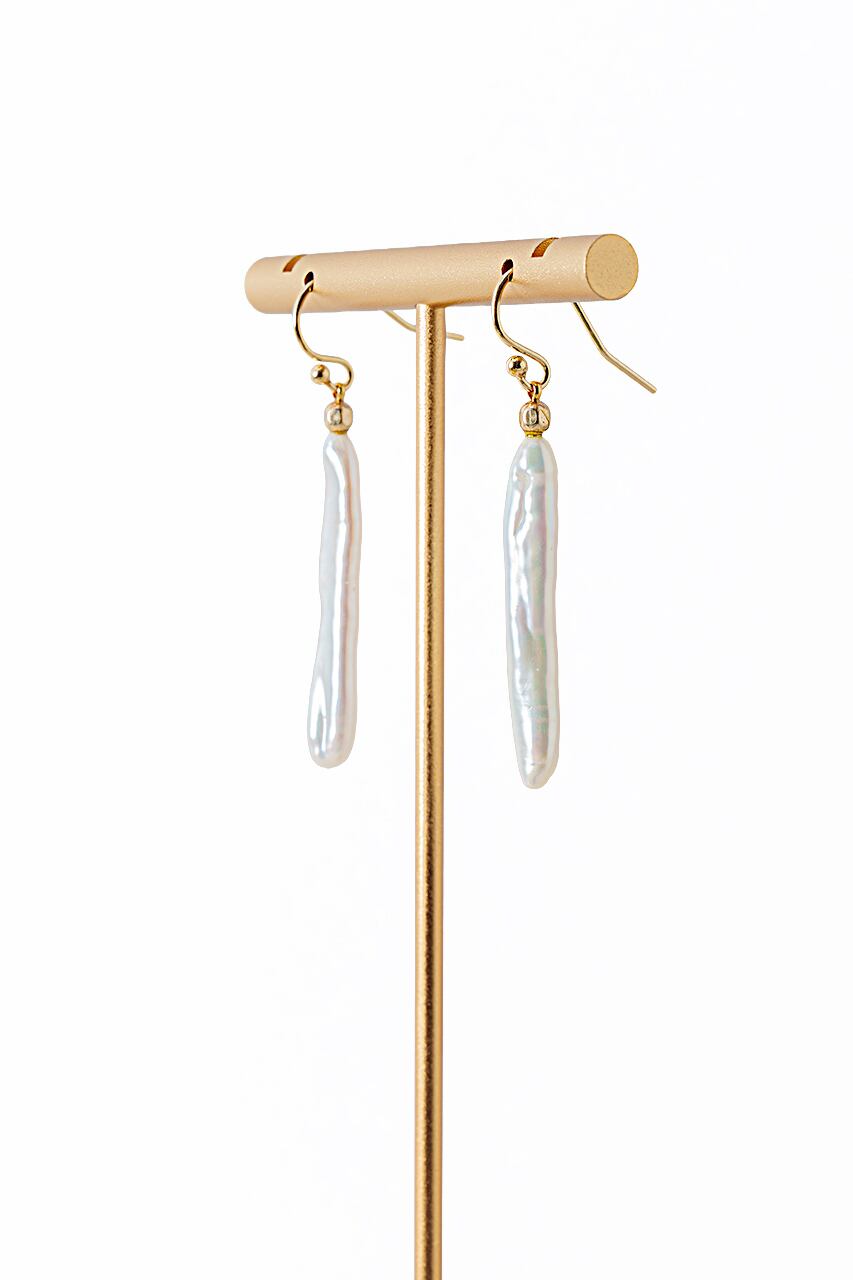 スティック型淡水パールの上部に14KGF製スクエア型ビーズを合わせたイヤリングです。