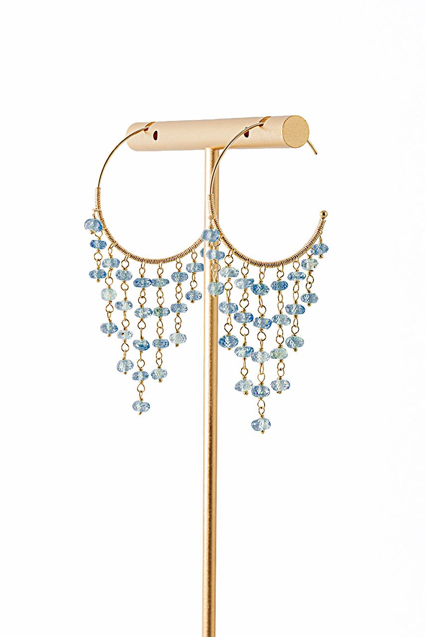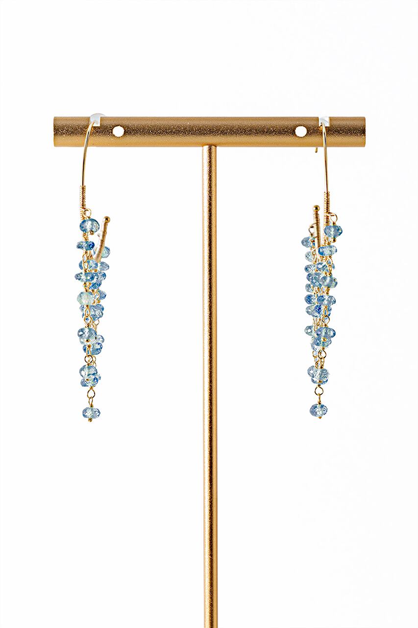ブルージルコンを贅沢に使用したシャンデリアピアスです。