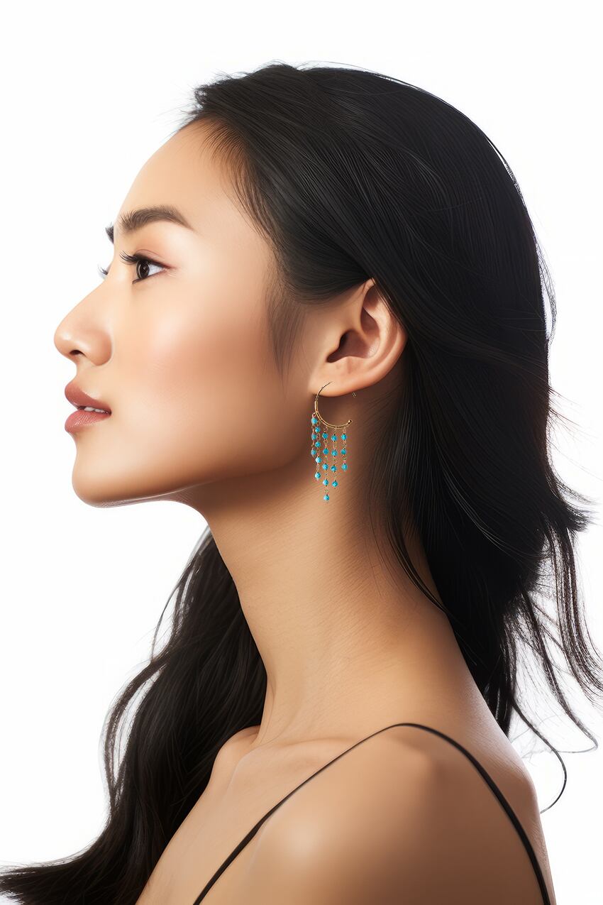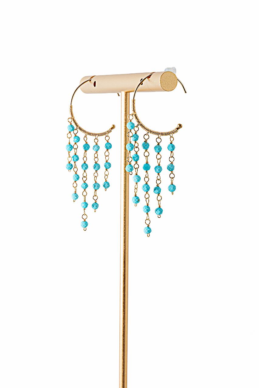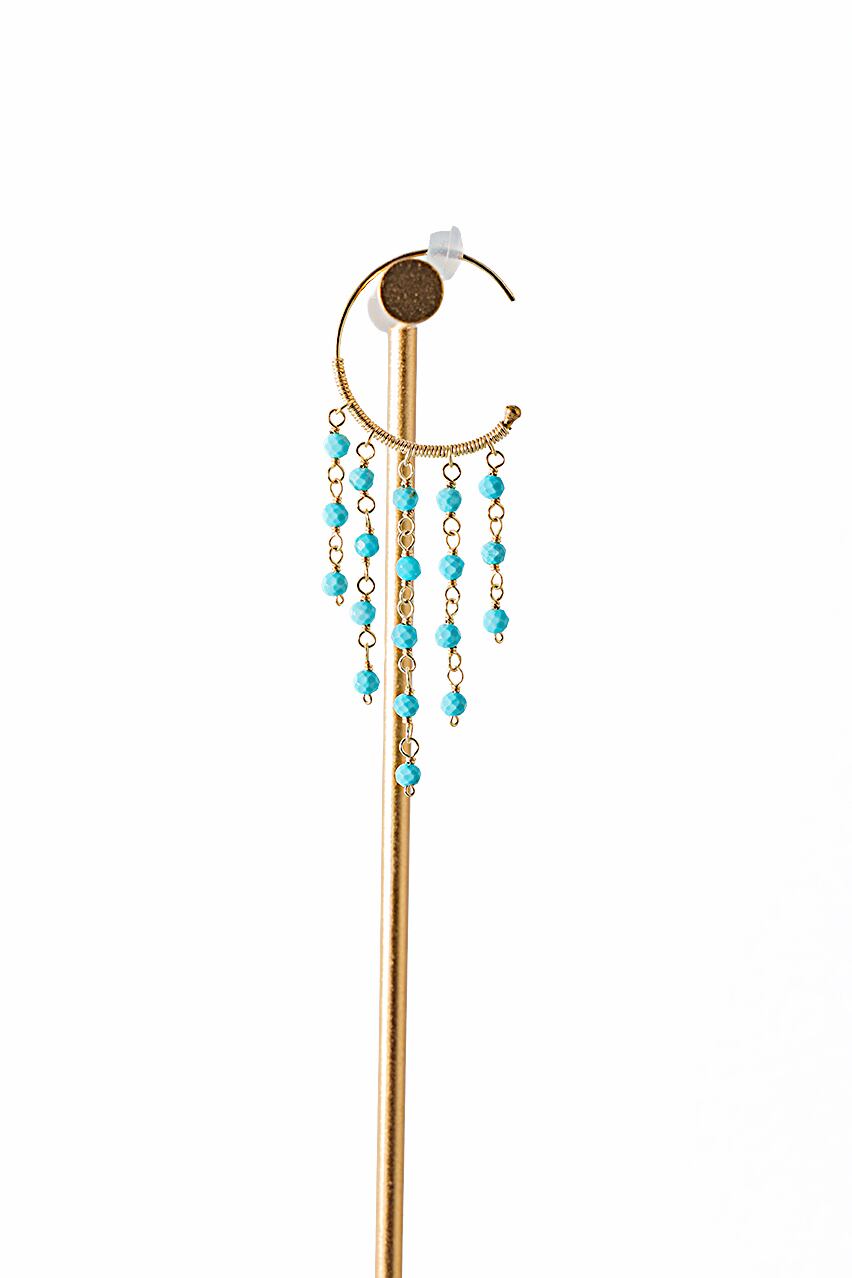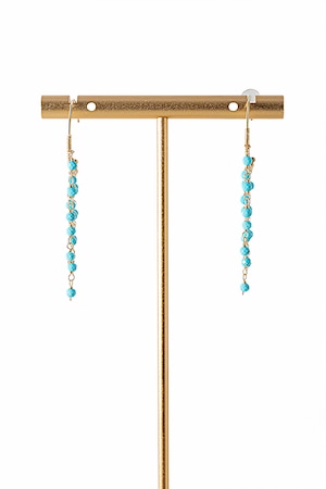 約2ミリのマグネサイトターコイズは優しい色合いが特徴で、耳元で軽やかに揺れることで、リラックスした雰囲気を演出します。