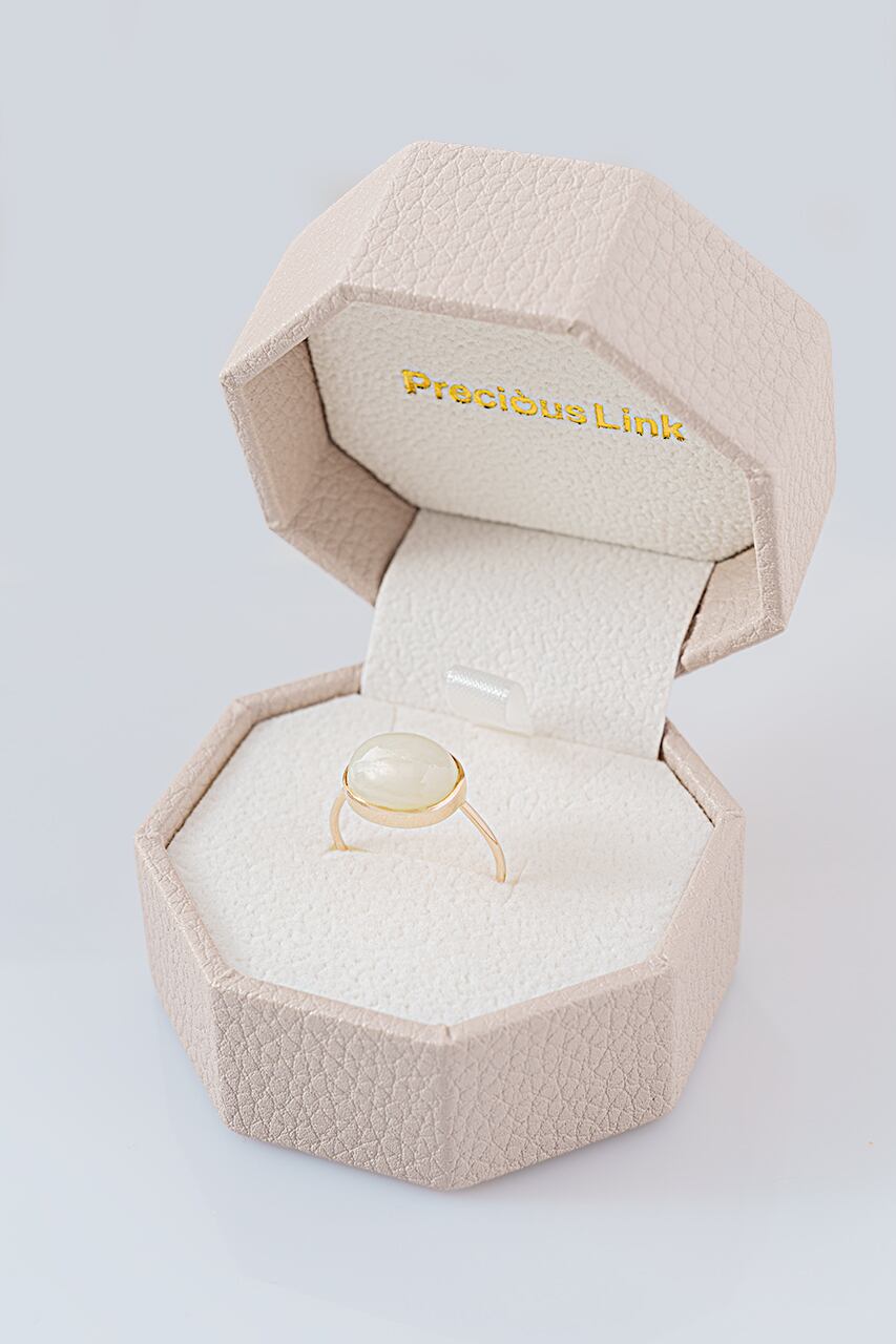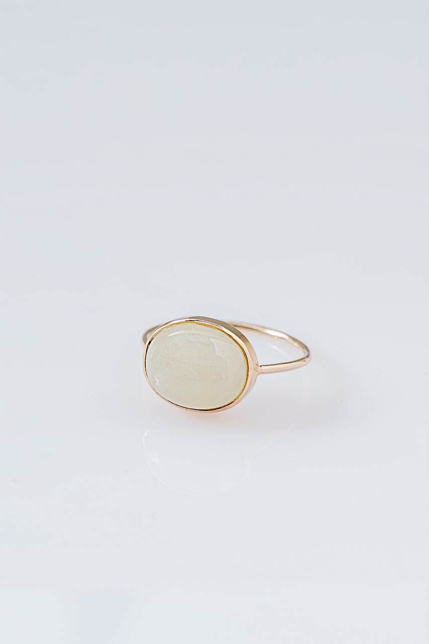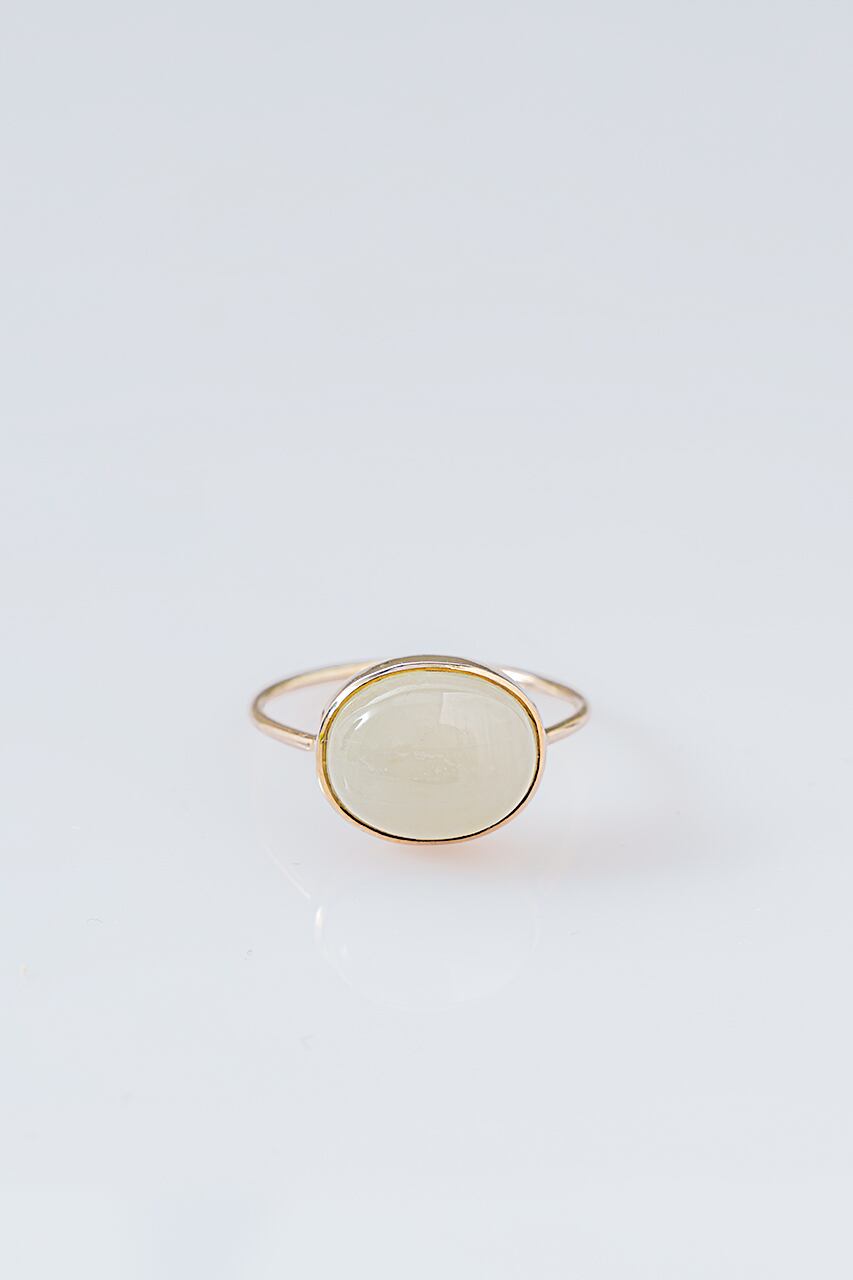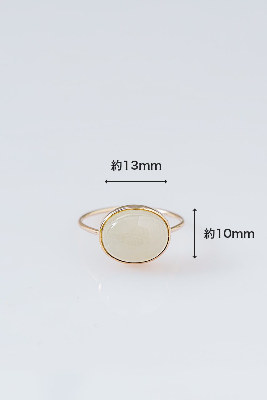 石のサイズは約13×10mm。瑞々しい輝きの中にほのかな存在感を感じさせる、大人の女性にふさわしいリングです。