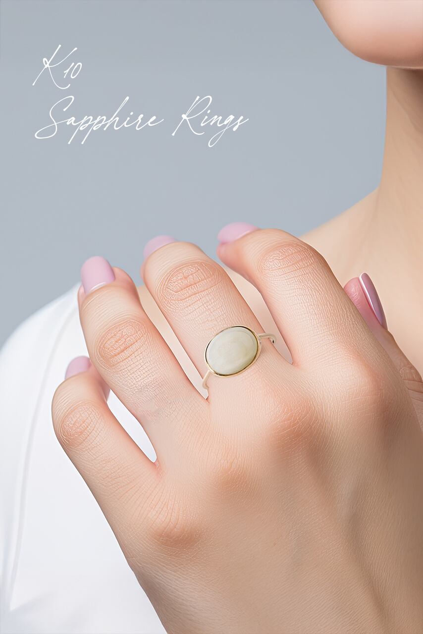 ミルキーな輝きのホワイトサファイアを、覆輪留めであしらったK10製のリングです。