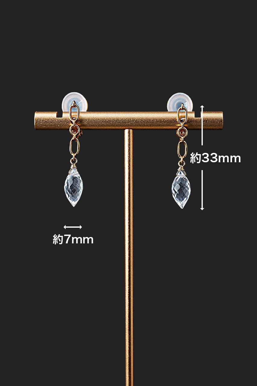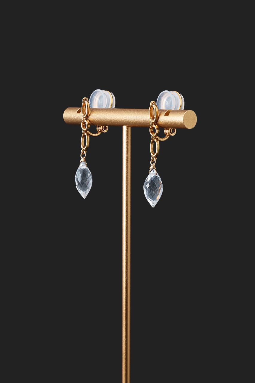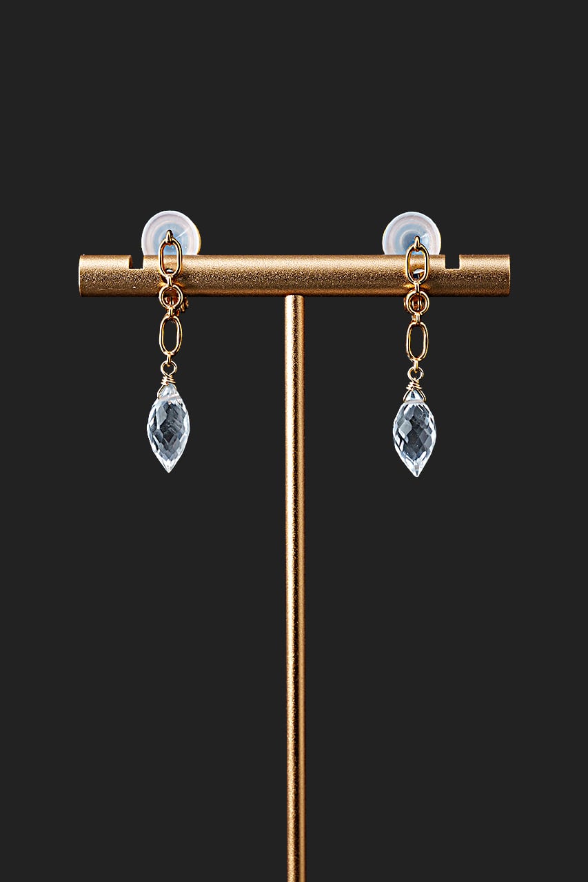 合わせた天然石は澄んだ輝きを放つマーキスライスカットの水晶で、耳元で上品に揺れるイヤリングとなりました。光を受けてきらめく透明感が柔らかな印象を添えます。