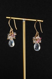 ホワイト&ピンクの組み合わせですが、ピンクサファイアがとても優しい色合いなので可愛くなり過ぎず、お肌に明るさをプラスするようなピアスになりました。