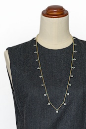 Y字ネックレスは縦長ラインを強調出来るので、お勧めの付け方。留める位置によって表情が変わるのも魅力です。